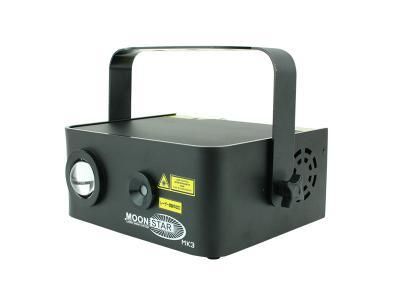 ※古いロットの為、外箱が傷んでいます。 ※本体は動作チェック済みですのでご安心下さい。 ムーンスターはレーザーとLED照明を同時に照射することで、オーロラ感を出せる機材となっています。 軽量コンパクトなので、設置もしやすく、本体操作のみでも簡単に使用できます。 DMX操作も可能です。 電源入力:AC100-240V、50 / 60Hz 電力:15W 制御方法:音調同期モード、DMX 512 signal control 、自動演出 DMXチャンネル数:7チャンネル 冷却システム:ファン 使用環境:室内 10〜40度 重量:1.7kg レーザー波長:532nm(GREEN )40mw /650nm(RED) 100mw レーザー出力レベル:140 mw レーザー分類:クラス3B LED出力: 5W(青) スキャン角度:160度 マニュアル:当店作成の日本語簡易取り扱い説明書