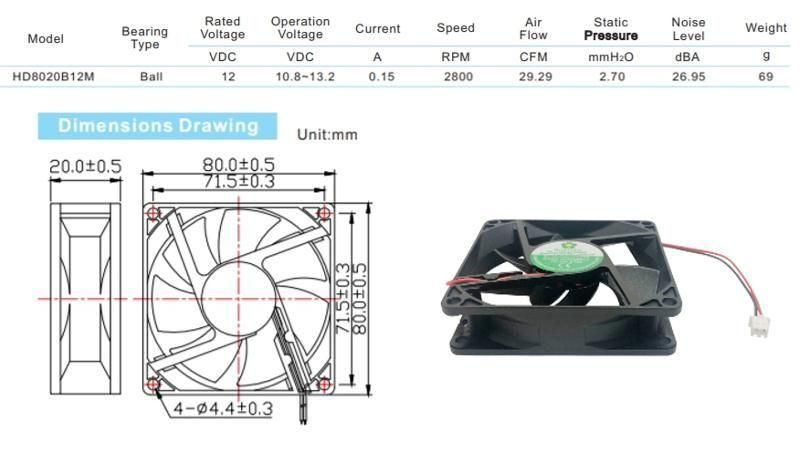 ※こちらの商品は2個セットの販売となります。 ・電圧:12V ・回転数:2800RPM ・使用温度範囲(℃):-10〜+70 ・サイズ:80x80x20mm(詳細は写真3枚目参照) ・ケーブルの長さ:約250mm その他数値は写真2枚目の表を参照